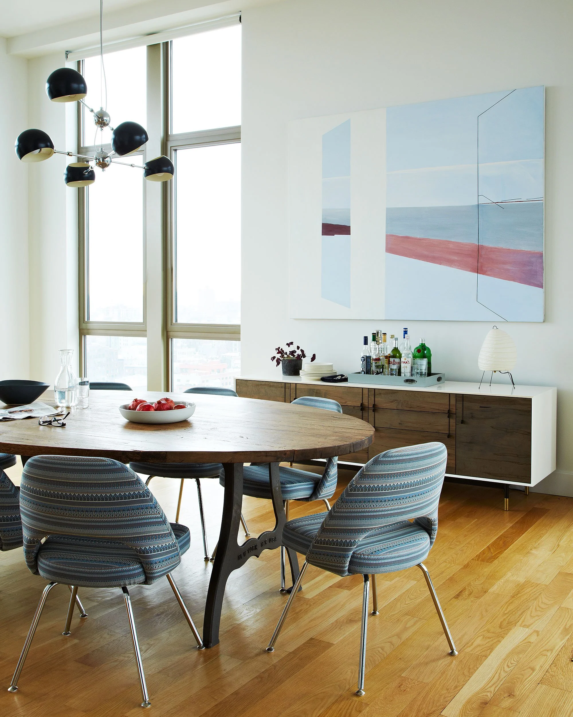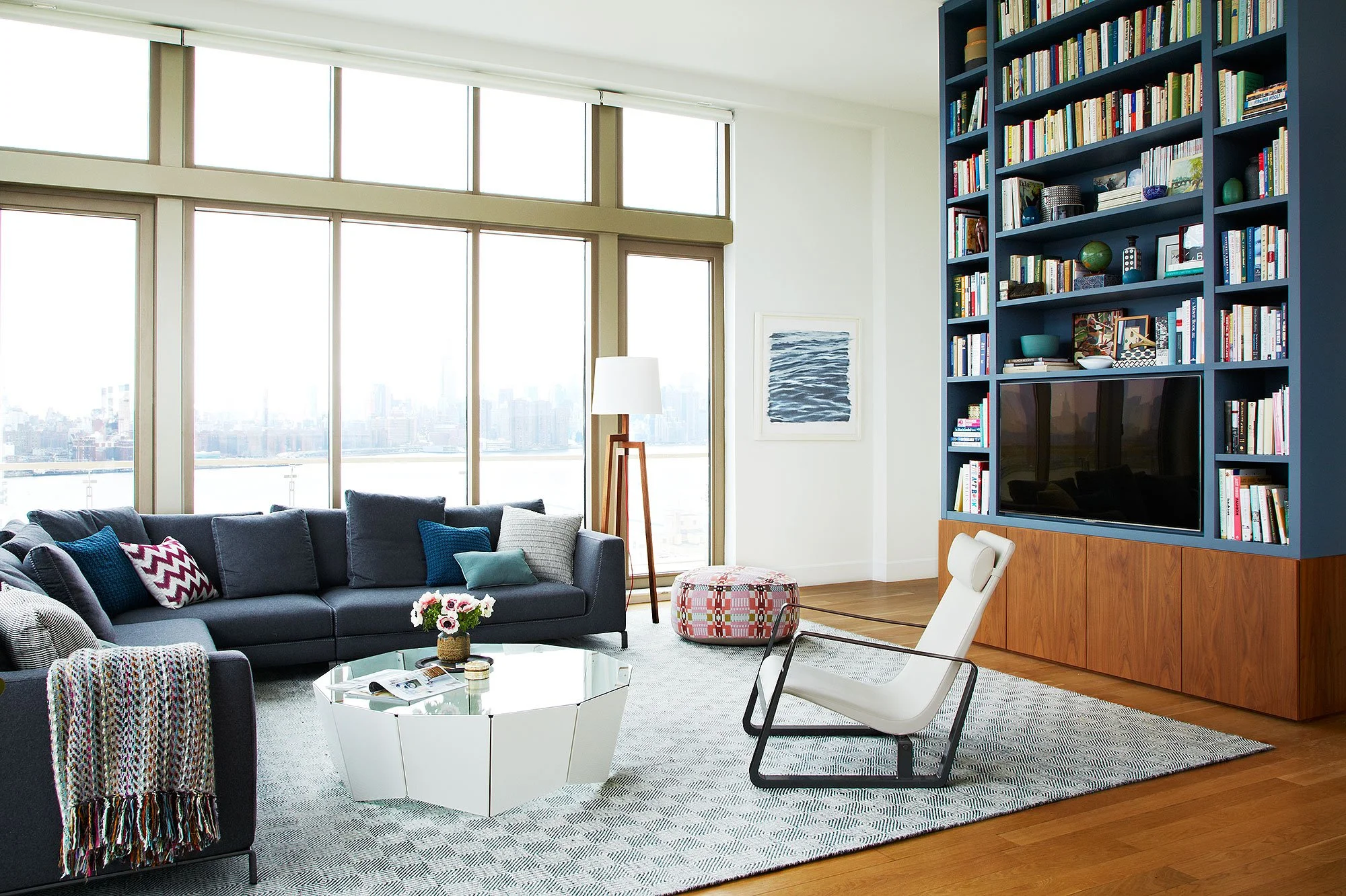 Though this penthouse had just been built when our client acquired it, it lacked personality and the scale was daunting. Hannah worked closely with a high-end builder on a renovation aimed at eliminating contractor-grade finishes and adding organic materials and texture to the space. She designed millwork to anchor the tall great room and fully furnished the apartment with a mix of new and vintage pieces. The result is a home that is chic, human, and serene, and allows the client’s style to shine through.